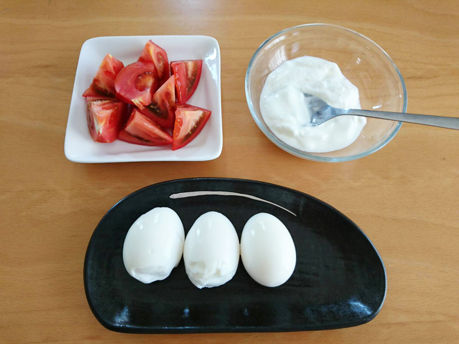 ・〔朝〕ゆで卵、トマトかブロッコリー、ヨーグルト