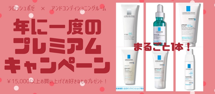 ラロッシュポゼ製品を¥15,000以上(税抜)お買い上げで【選べるまるごと1本プレゼント!!】